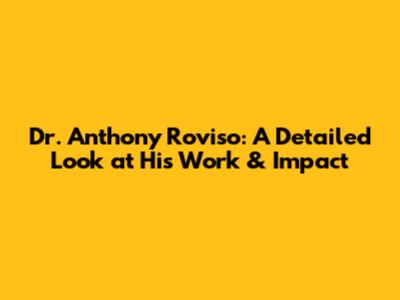 Dr. Anthony Roviso: A Detailed Look At His Work & Impact