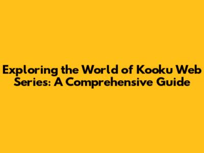 Exploring The World Of Kooku Web Series: A Comprehensive Guide