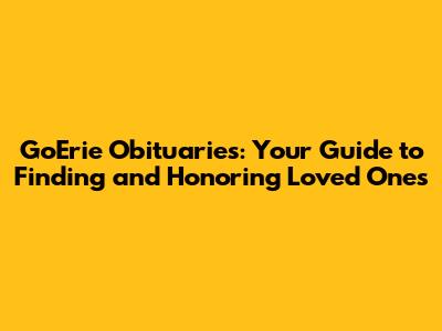 Q: Where can I find GoErie obituaries online? A: You can find GoErie obituaries on GoErie.com, Legacy.com, and the websites of local funeral homes such as Brugger Funeral Homes & Crematory, Burton Funeral Home, and Dusckas-Taylor Funeral Home & Cremation Services.