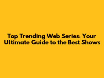 Top Trending Web Series: Your Ultimate Guide to the Best Shows