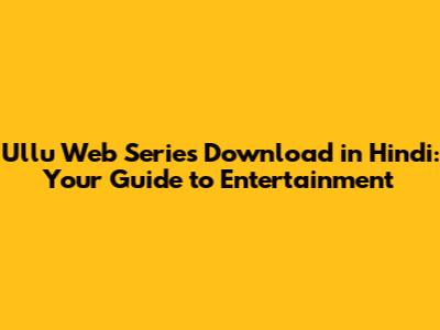 Ullu Web Series Download In Hindi: Your Guide To Entertainment