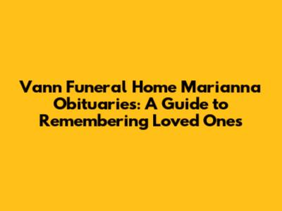 Vann Funeral Home in Marianna, Florida holds a significant place in the community, offering compassionate services to families during their times of need. If you are looking for information about obituaries, memorial services, or how to honor the memory of a loved one, this guide is designed to help you navigate the resources available through Vann Funeral Home. We'll explore how to find obituaries, understand the services offered, and provide insights into what makes Vann Funeral Home a trusted choice for many families in Marianna and the surrounding areas. Whether you're seeking to pay respects, find information about a family member or friend, or plan for the future, this article is your starting point.